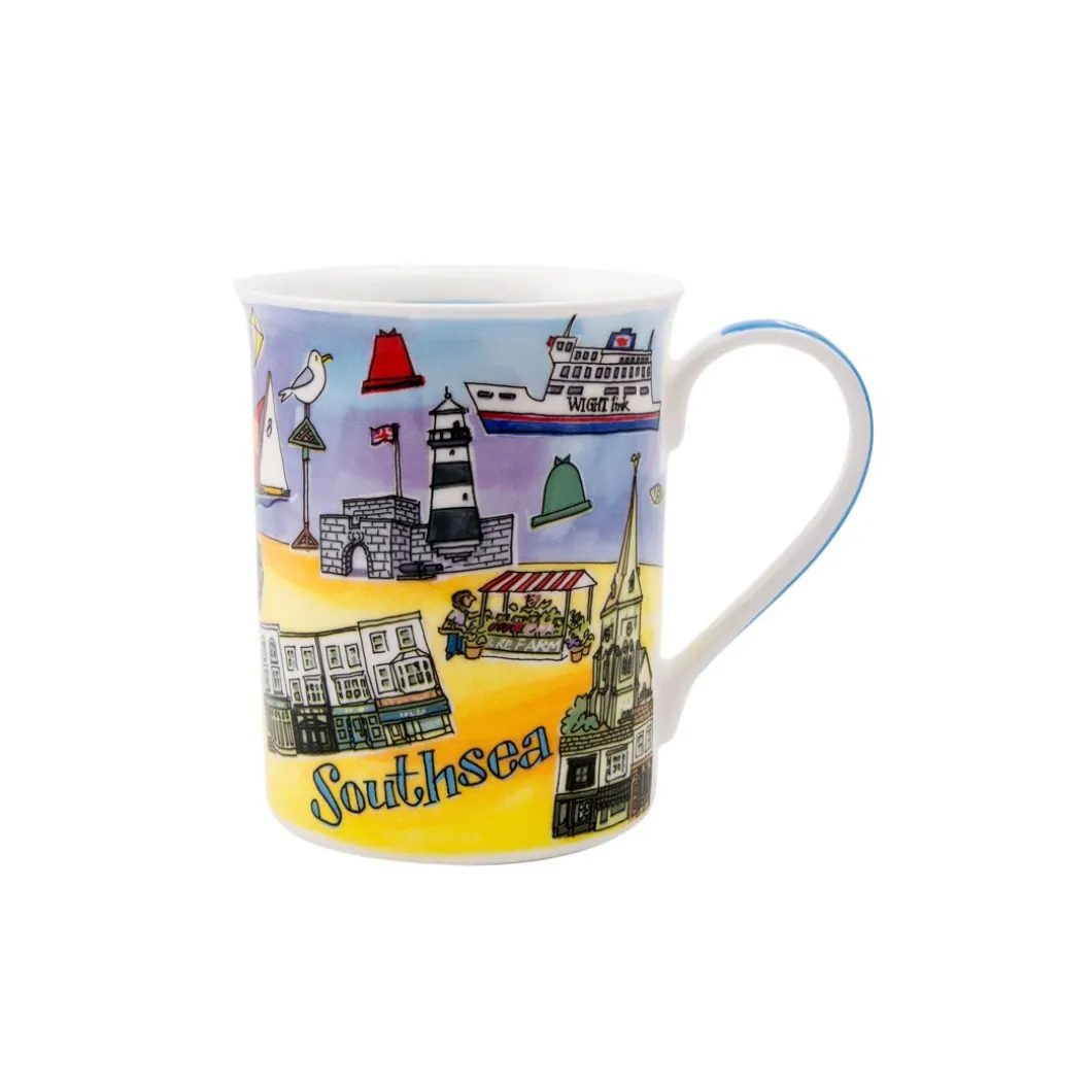 Southsea is the seaside town on Portsea Island and is a hubbub of independent shops, bars, and eateries as well as being Alison’s home. This design captures the beauty of this area, the pebble beach where evenings can be spent on long summer days, the Solent, the lively nightlife and the community spirit. Featuring illustrations of local favourites such as the Kings Theatre, Southsea Castle and South Parade Pier. The perfect gift for a Southsea resident or a souvenir for the fleeting visitor who would like to capture their memories here.